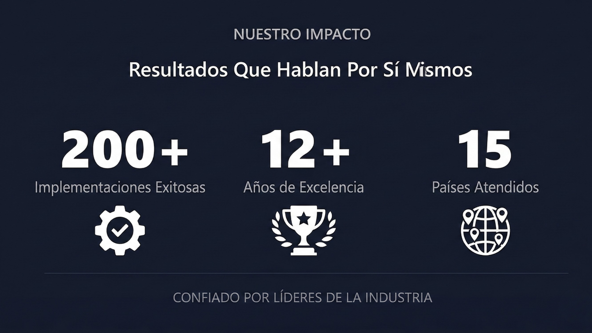 Más de 200 implementaciones exitosas. Cero fallos. No solo implementamos Odoo, sino que diseñamos transformaciones empresariales que generan un retorno de la inversión (ROI) medible en 6 meses, garantizado.